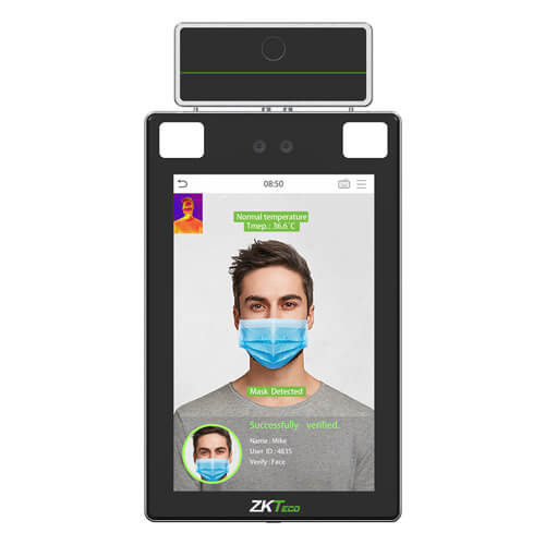 SpeedFace-V5L[QR][TI] is an upgraded version of the SpeedFace-V5L[QR] Visible Light Facial Recognition Terminal, using intelligent engineering facial recognition algorithms and the latest computer vision technology. It supports a multi-factor identity authentication system by using QR Codes and acquired face/palm data for computational template matching. Besides, the terminal offers large capacity and speedy recognition.